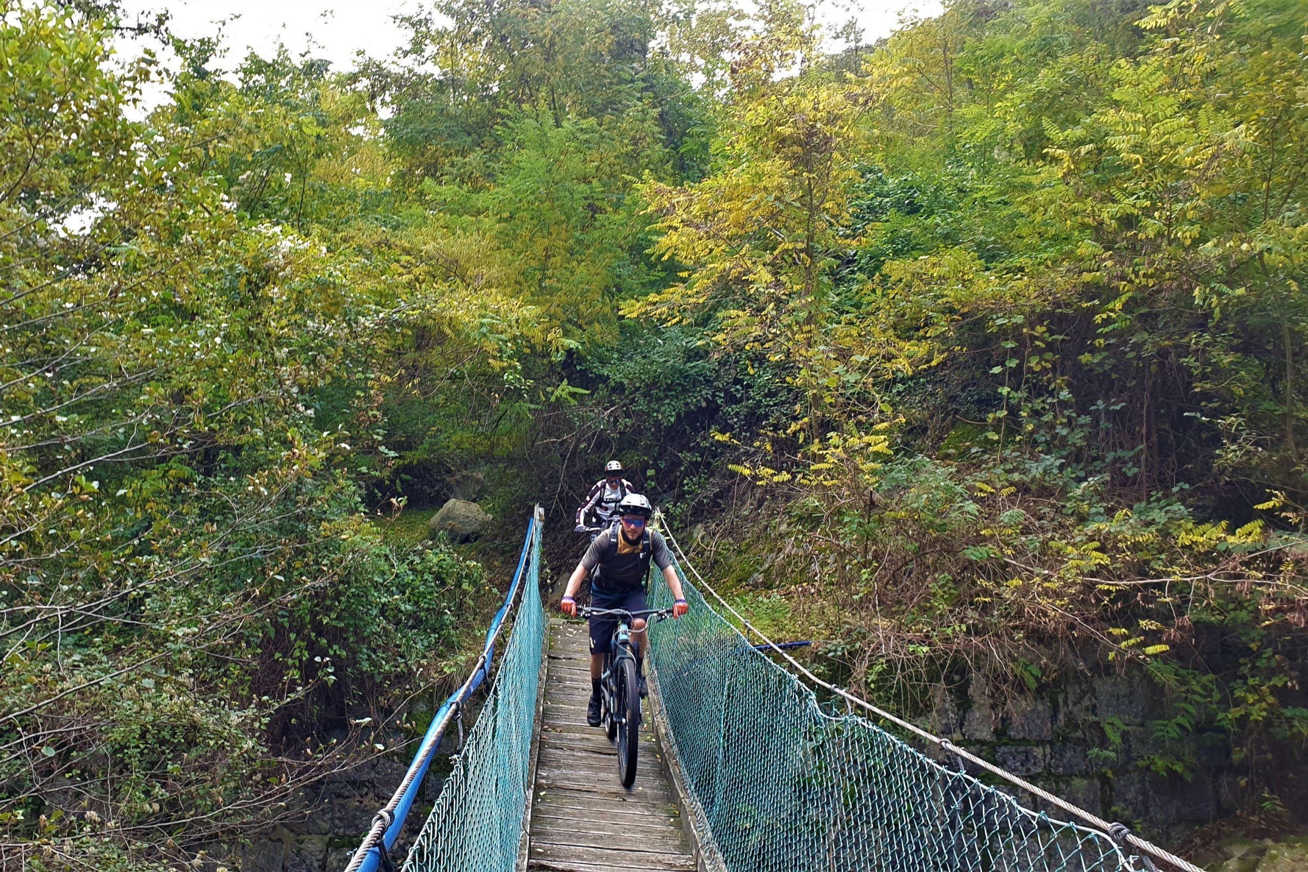 Ci addentreremo quindi nel sottobosco percorrendo un trail in leggera salita, per poi cominciare a scendere in direzione dei Monti di Menarola. Qui qualche passaggio tecnico, in particolare un paio di tornantini stretti, metteranno alla prova le nostre doti trialistiche!