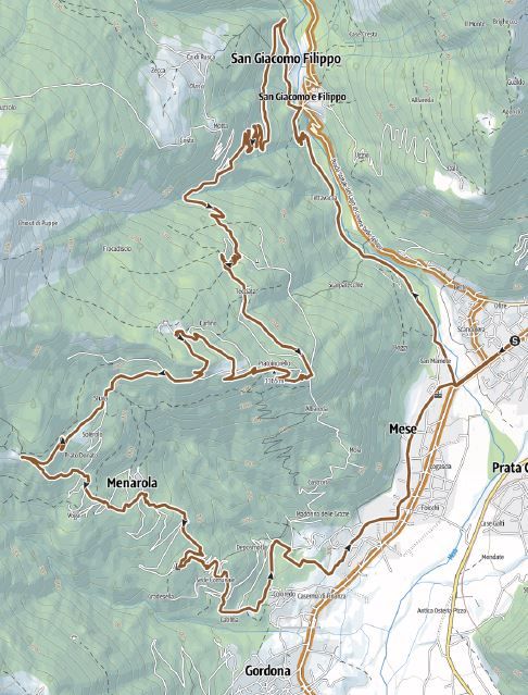 Una volta sbucati sulla strada asfaltata che da Gordona sale a Menarola, saliremo gli ultimi 100 m di dislivello per raggiungere l'Alpe Dardano, da cui comincerà la discesa principale di giornata: la prima parte un susseguirsi di tornantini su sentiero naturale, a tratti ripido con sfondo smosso, sarà seguito da una seconda parte in mulattiera, più veloce, che attraversa più volte la strada, fino a condurci a Gordona, dopo più di 1000 m di dislivello!
