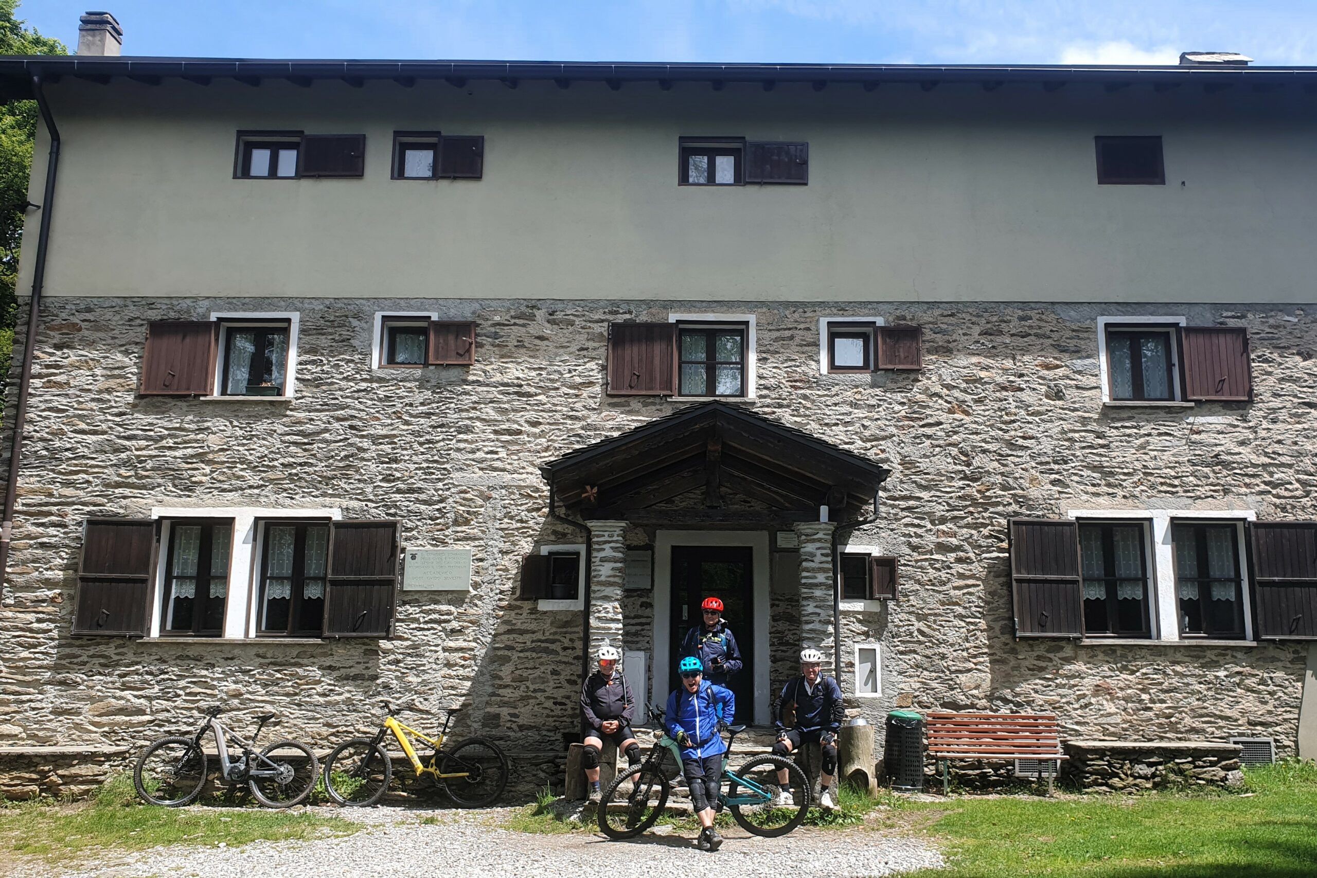 Un ottimo pranzo al rifugio è la giusta ricompensa, prima di buttarci nella lunghissima discesa, un misto di trail naturali, passando anche attraverso le trincee della Linea Cadorna risalenti all'inizio del secolo scorso, qualche tratto di mulattiera, e tratti flow con un bellissimo fondo di sottobosco di aghifoglie.